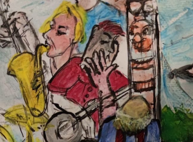 Die Literaturner und die Seniorenbegegnungsstätte Bülowh verbindet eine dreijährige Partnerschaft, in der auch persönliche Beziehungen gedeihen, so die Männerfreundschaft zwischen unserem Uwe Garten und dem Hobbymaler Dieter Richter. Letzterer begeisterte sich für Uwes Gedicht „Dürrheimer Jahrmarkt“, in dem ein Fremder in die enge Welt der Dorfbewohner eindringt und diese mit seinen Beobachtungen, Phantasien, Abstraktionen und Sehnsüchten bereichert. Dieter schuf ein großformatiges, phantasievolles Bild zum Gedicht. Text und Bild wurden bei der Vernissage der Kunstkurse am 14.11. in der Bülowh präsentiert.